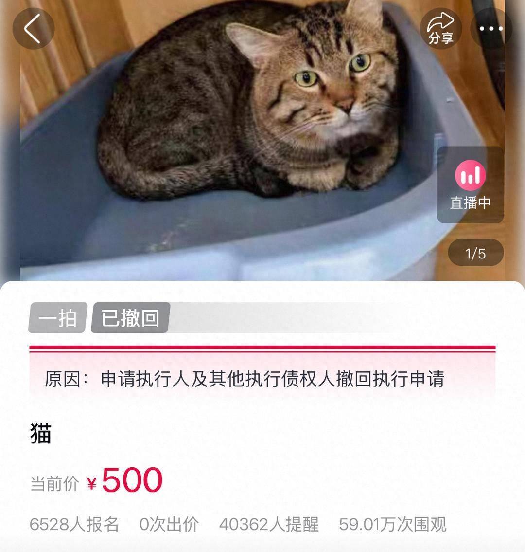 8月22日,红星新闻记者注意到,拍卖页面显示“已结束”,状态为“一拍已撤回”。记者以竞拍者身份咨询本次拍卖所委托的资产管理公司,其工作人员答复,申请执行人及其他执行债权人撤回执行申请,因此撤回拍卖。暂时不清楚未来是否还会进行拍卖,拍卖报名保证金将会退回。页面显示,本次拍卖已有6528人报名。记者尝试咨询寄养该狸花猫的宠物店,电话未能接通。