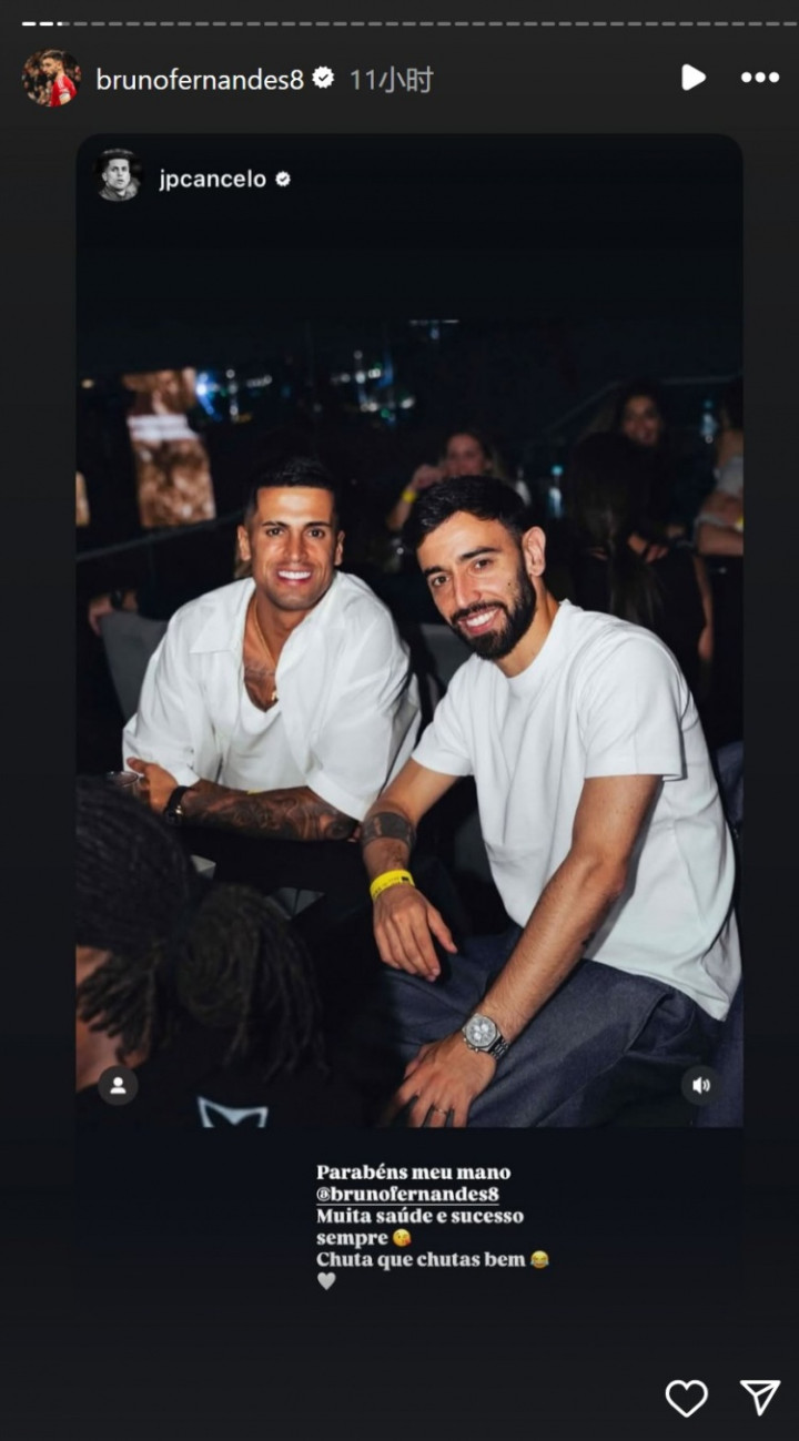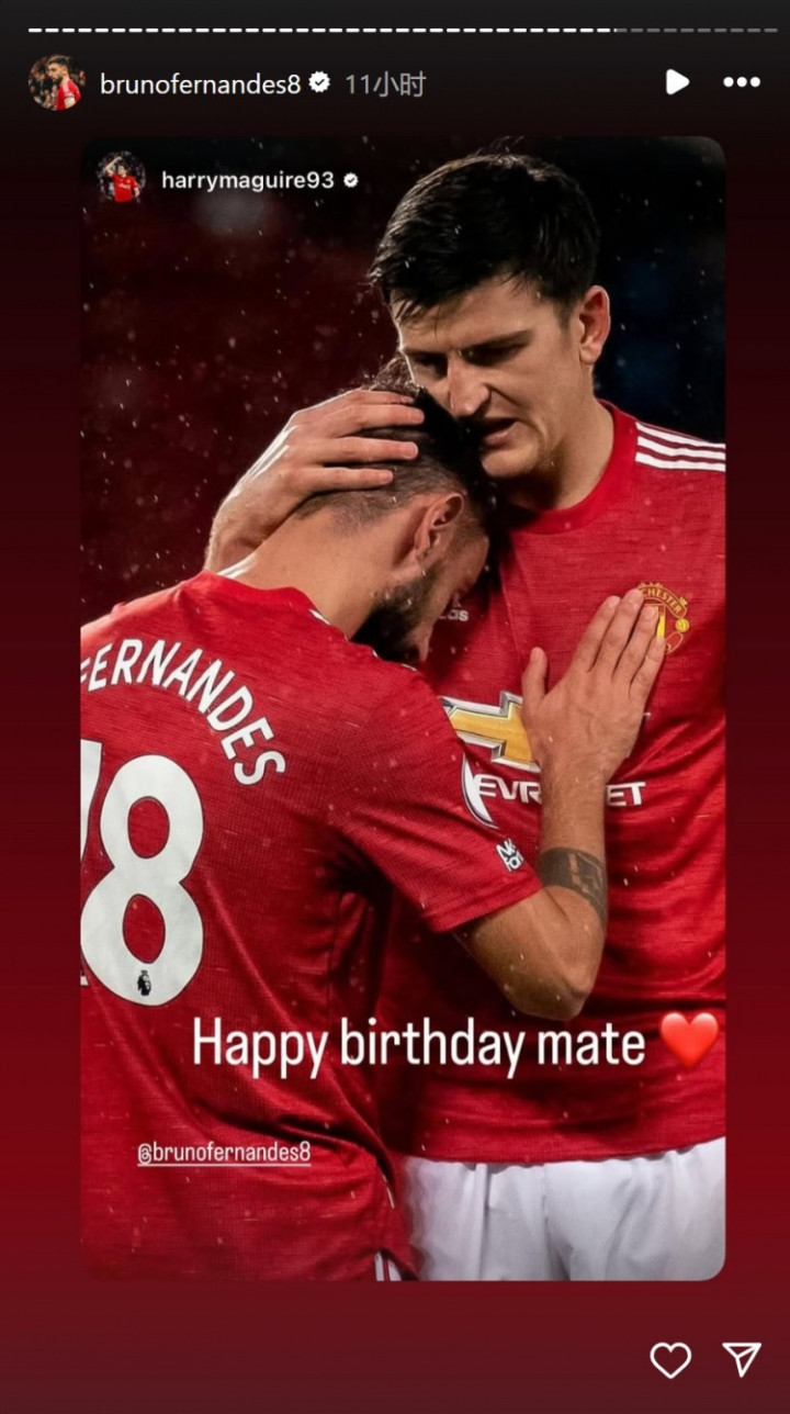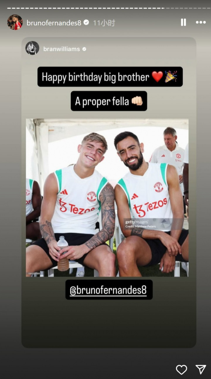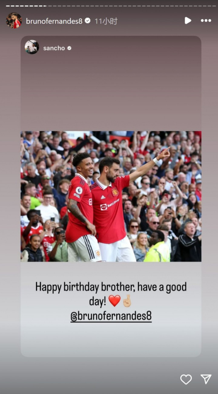 B费社媒转发了数十人对他的生日祝福,其中包括德赫亚、加纳乔、桑乔、马塔等前队友的祝福。